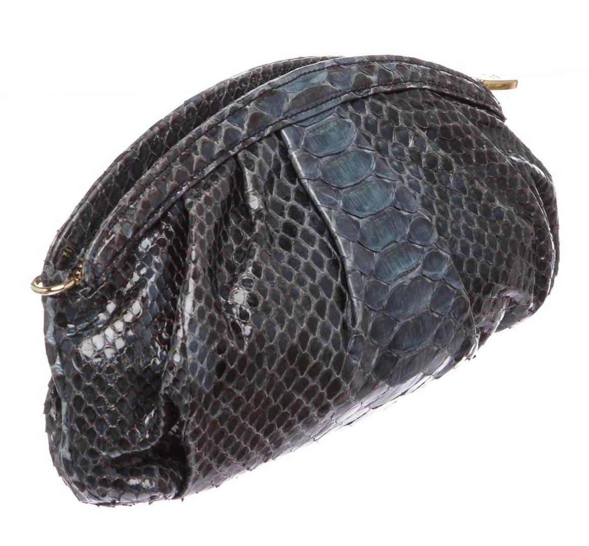 Overall zipper closure. Interior is satin lined with one slip pocket and one zipper pocket. Measurements: Length: 10 in / 25 cm Width: 1 in / 3 cm 5.5 in / 14 cm Condition: Pre-Owned Good overall, please see photographs for detail.