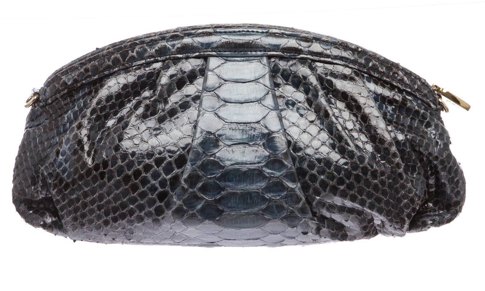 Overall zipper closure. Interior is satin lined with one slip pocket and one zipper pocket. Measurements: Length: 10 in / 25 cm Width: 1 in / 3 cm 5.5 in / 14 cm Condition: Pre-Owned Good overall, please see photographs for detail.