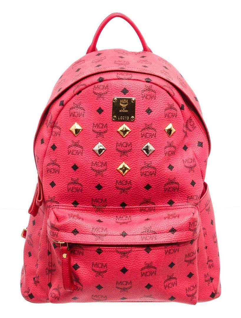 MCM Canvas Pink Backpack with silver and gold-tone hardware, exterior zip Pocket, interior three compartments pocket, adjustable shoulder strap and zipper closure. CONDITION: Pre-Owned Good overall, please see photographs for detail.