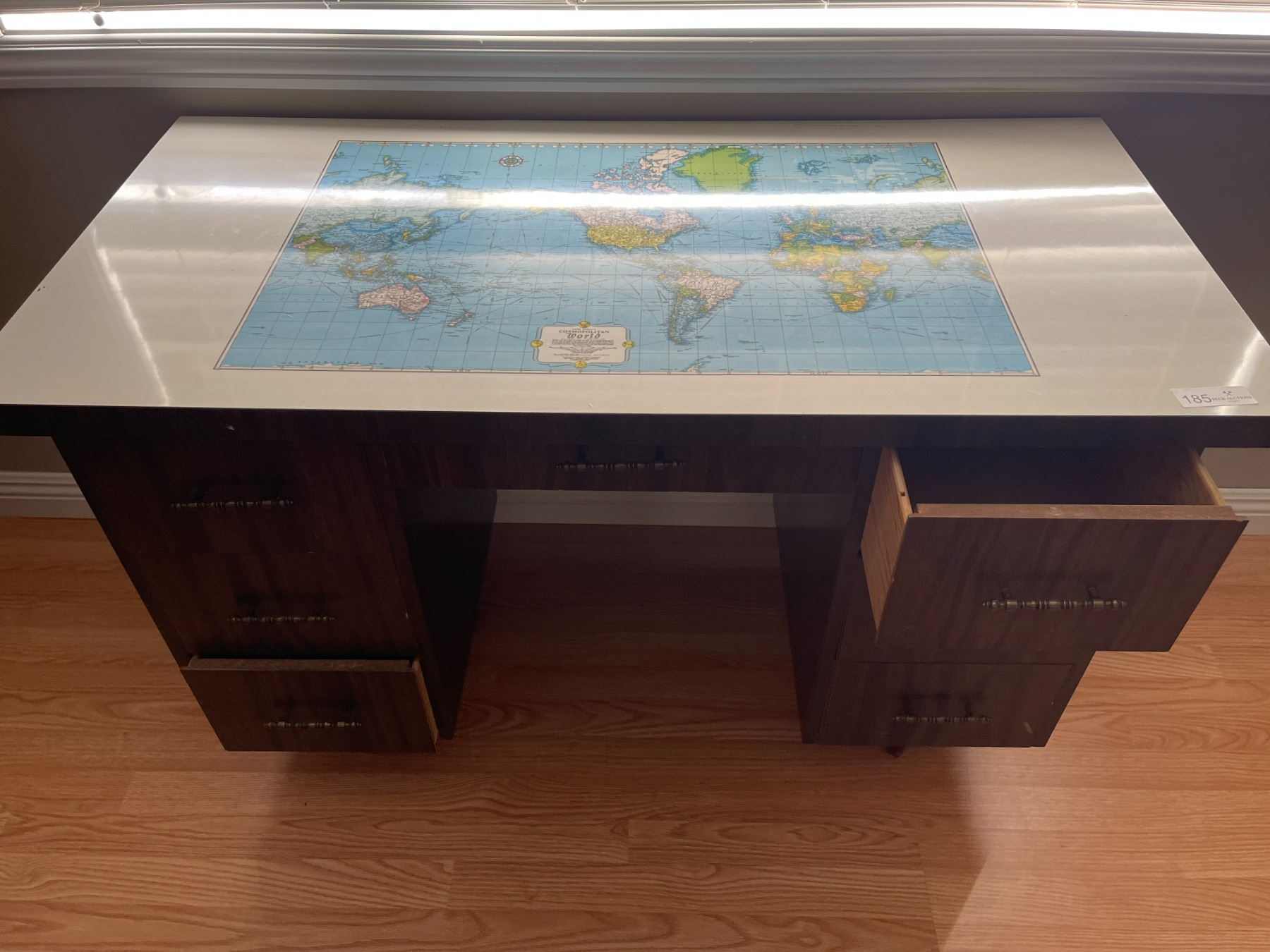 MCM Solid Wood Desk Has Cosmopolitan Map Top