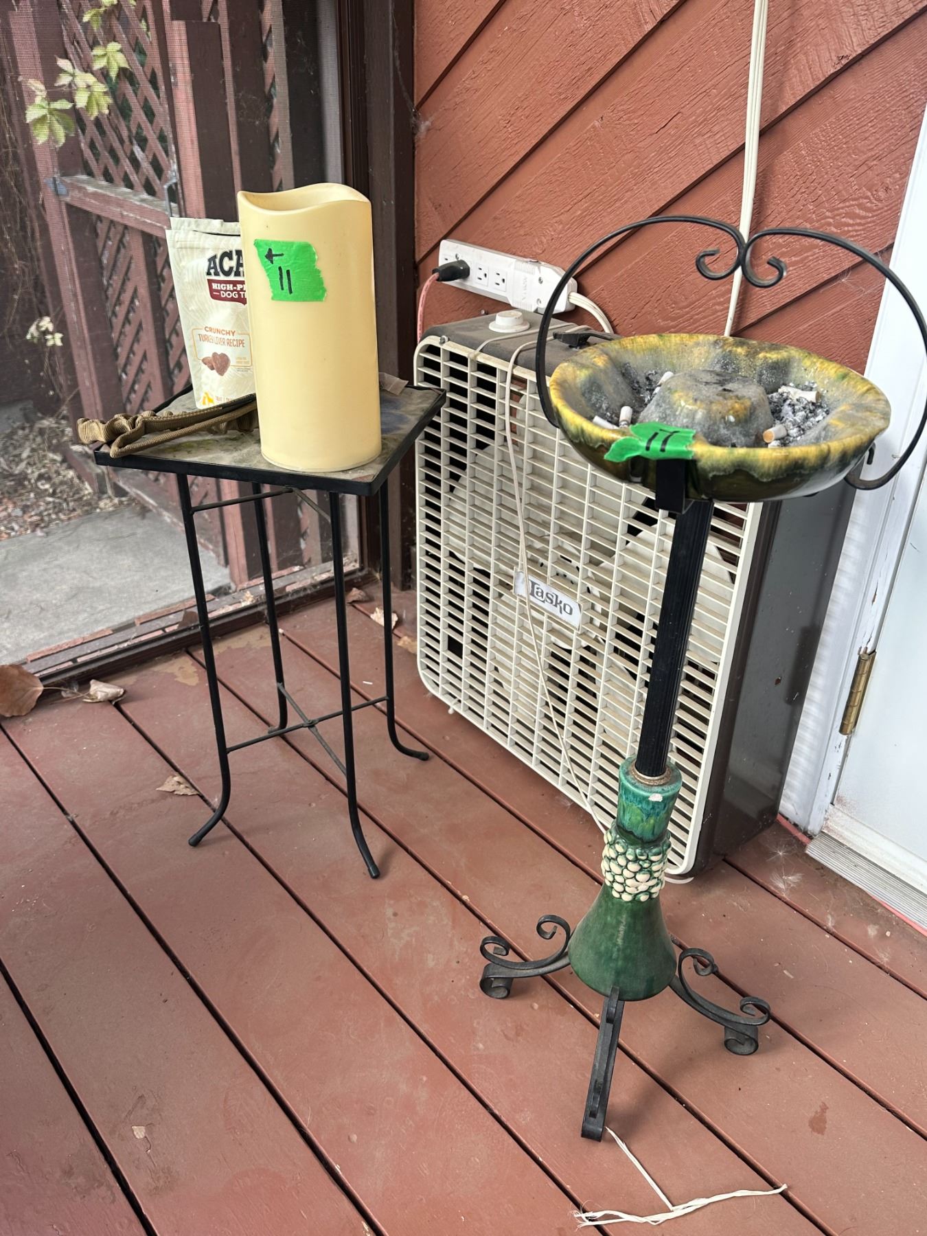 MCM Stand Up Ashtray, LED Candle + Outdoor Glass Side Side Table