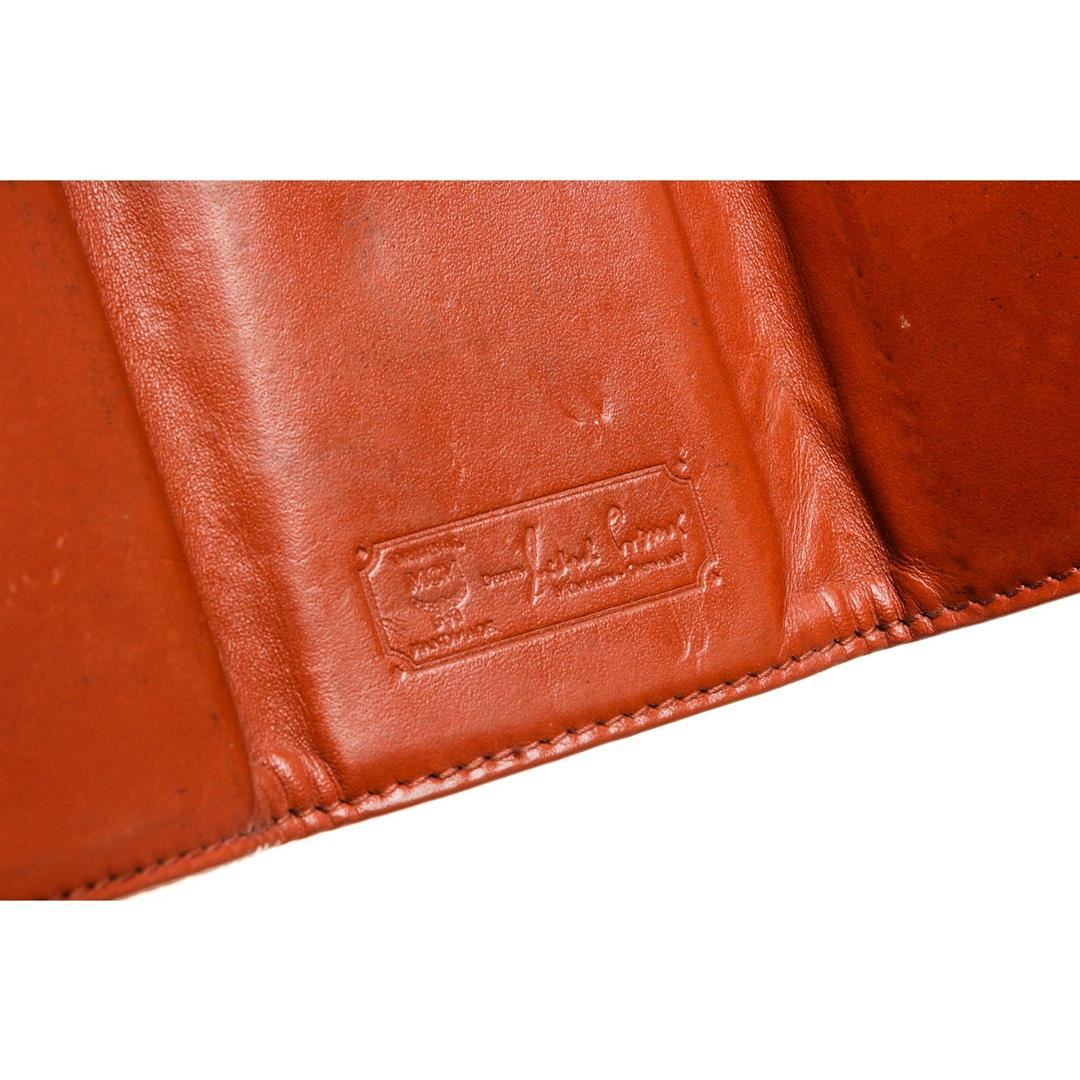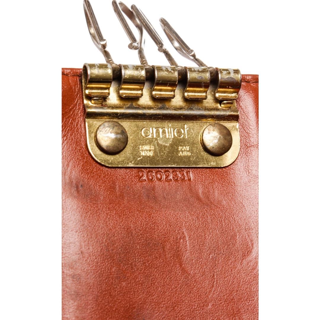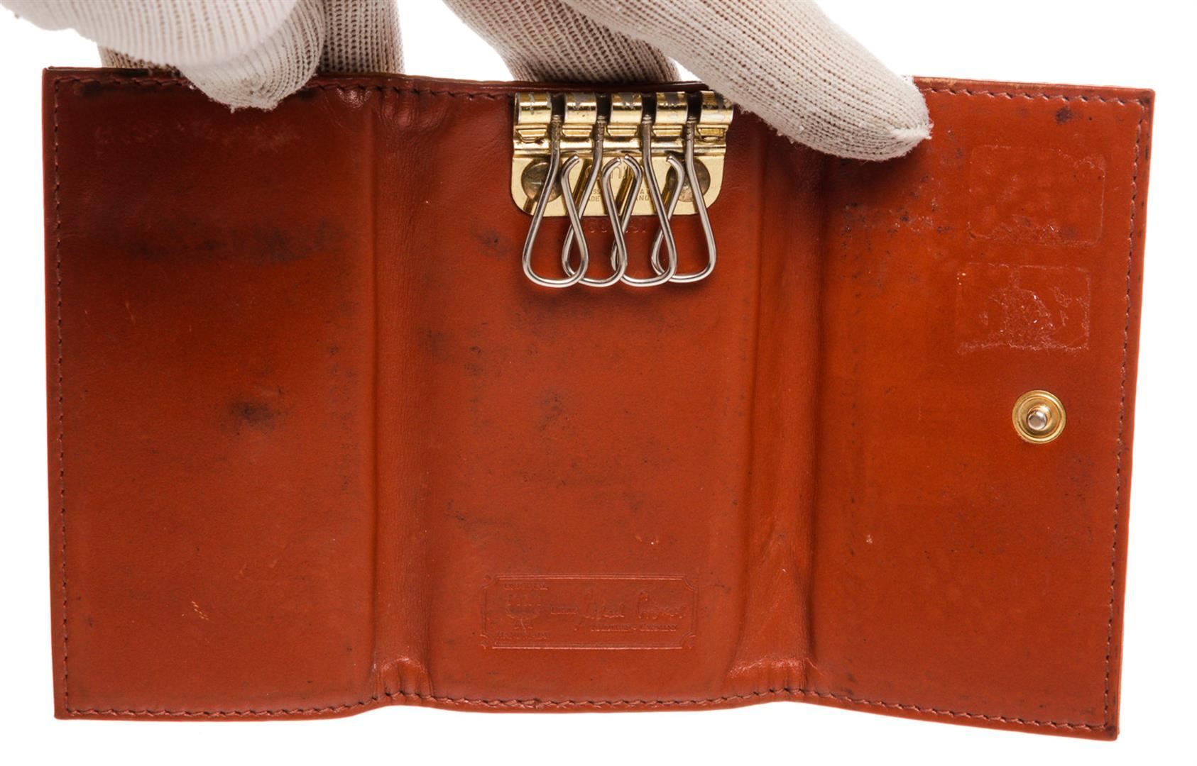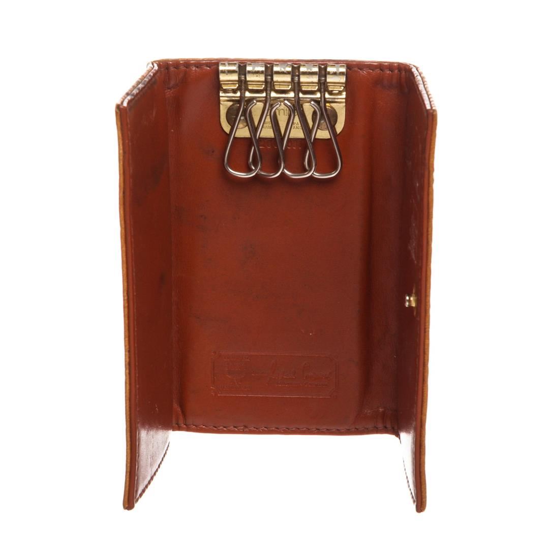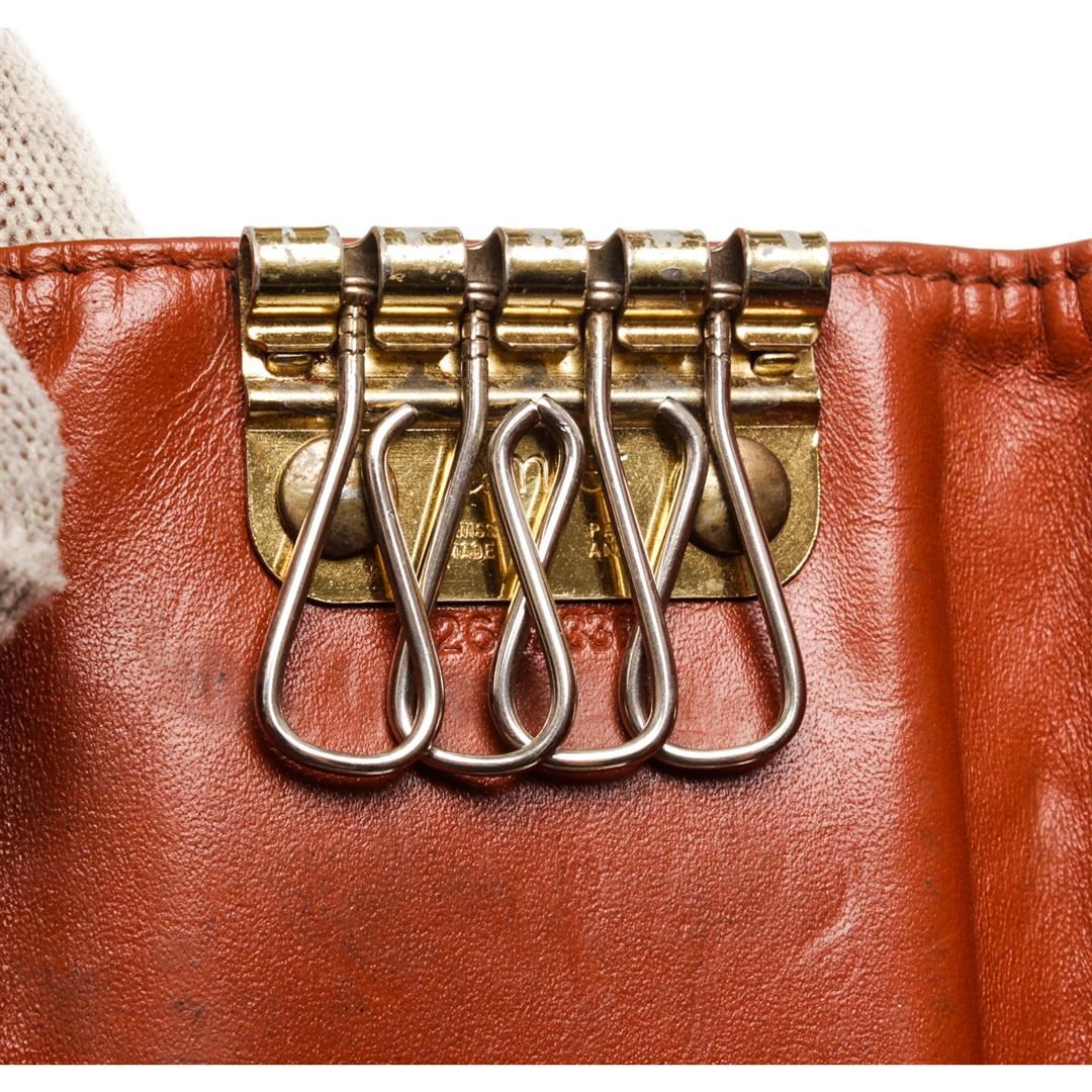 MCM tan Cognac monogram coated canvas 4 Key Holder with brown leather lining and snap closure.
