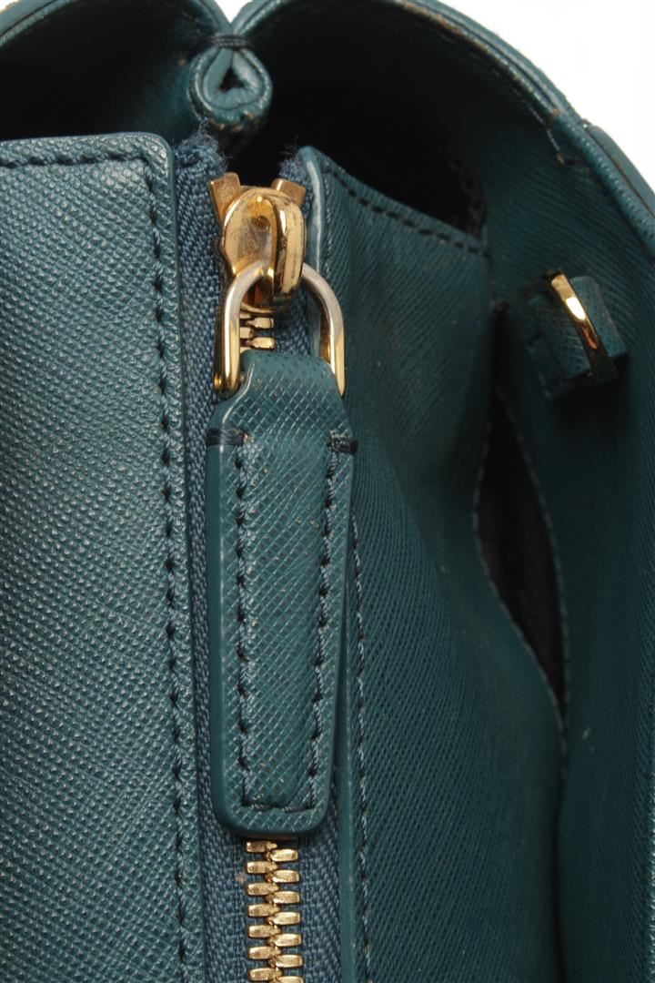 MCM Teal Leather 2 Way Shoulder Bag. All available information is listed in the description and shown in the photos. mcm teal leather 2 way shoulder bag with Gold-Tone Hardware, Rolled Handles & Single Adjustable Shoulder Strap, Leather Trim, Logo Jacquard Lining & Five Interior Pockets, Zip Closure at Top. Height: 8.5", Width: 12.25", Depth: 4.5"