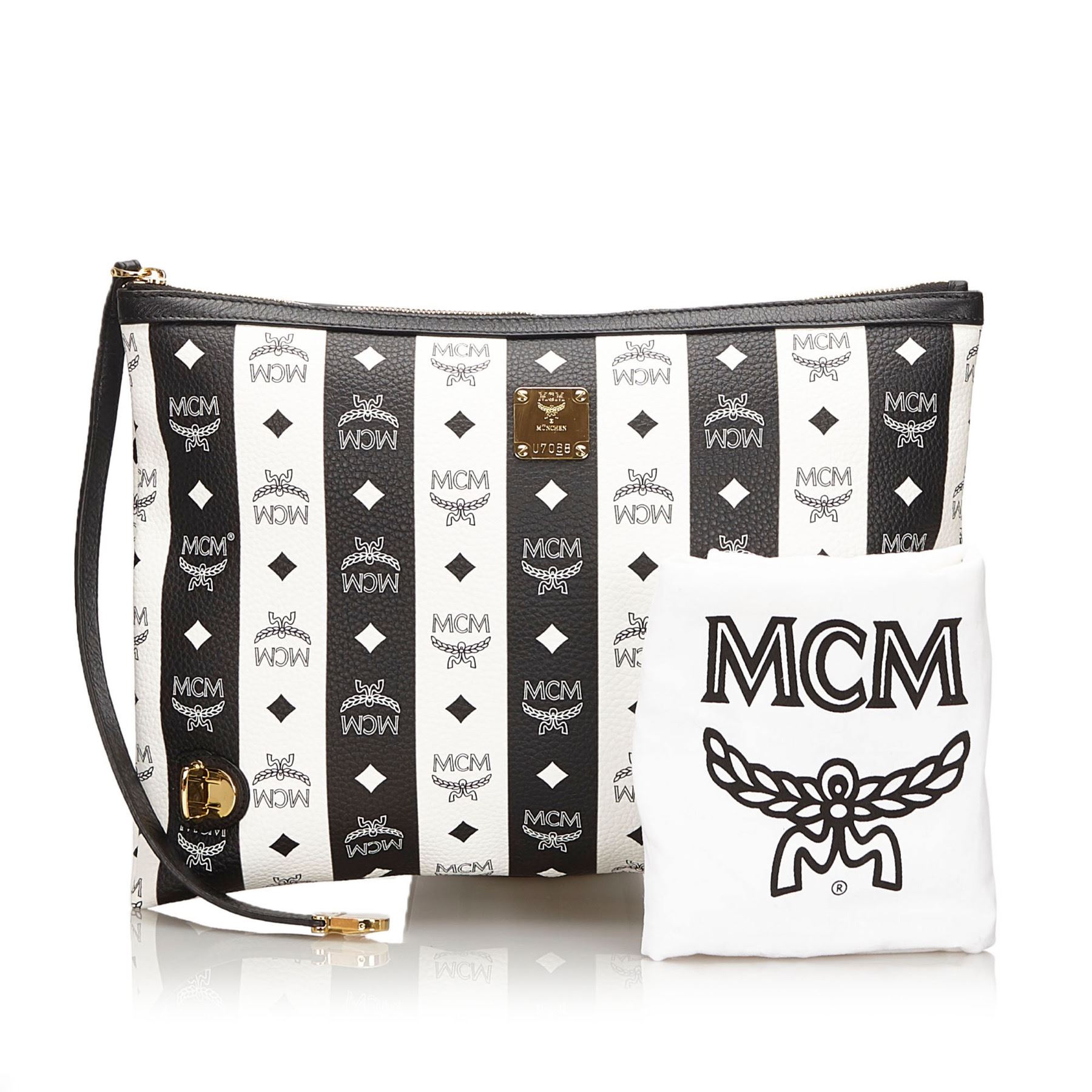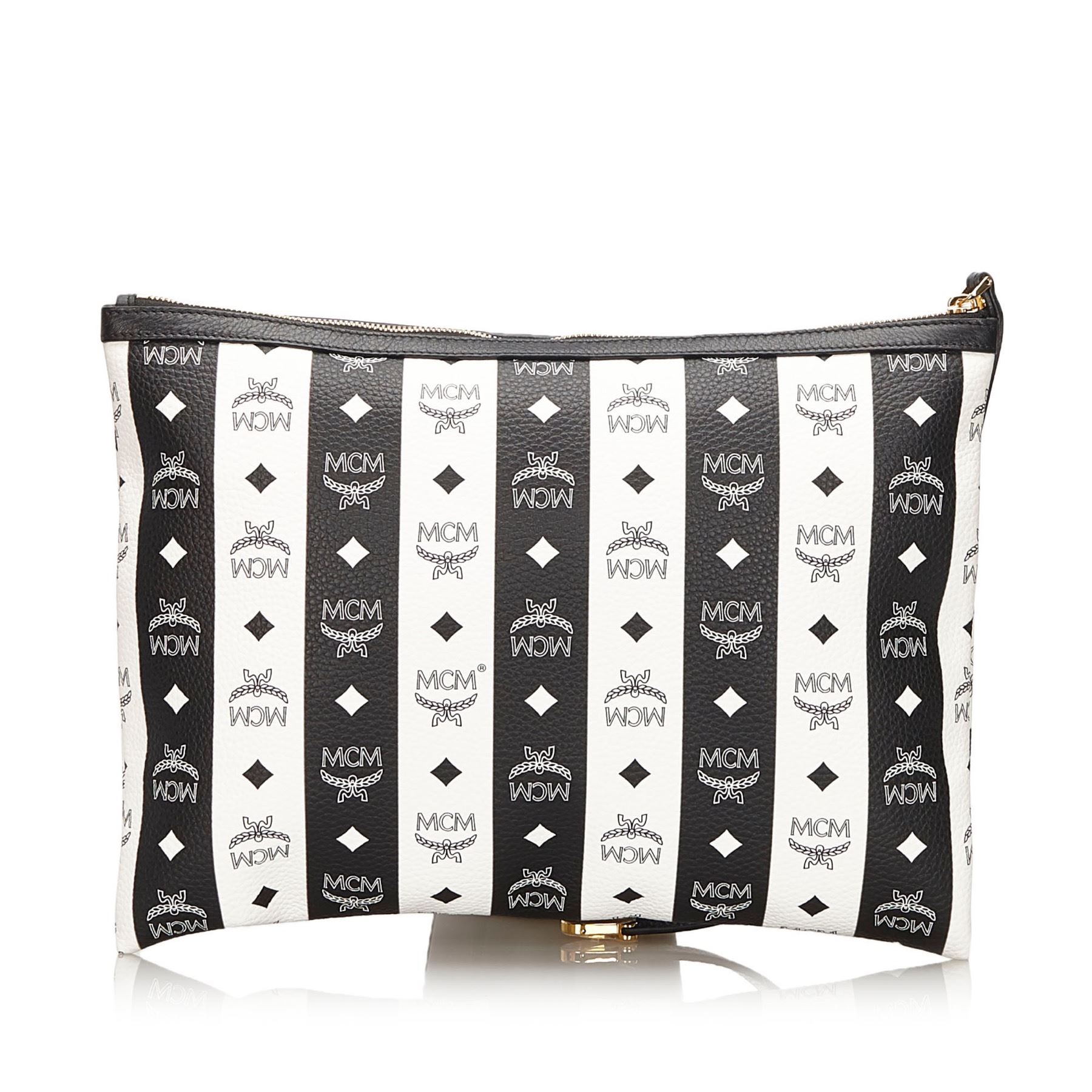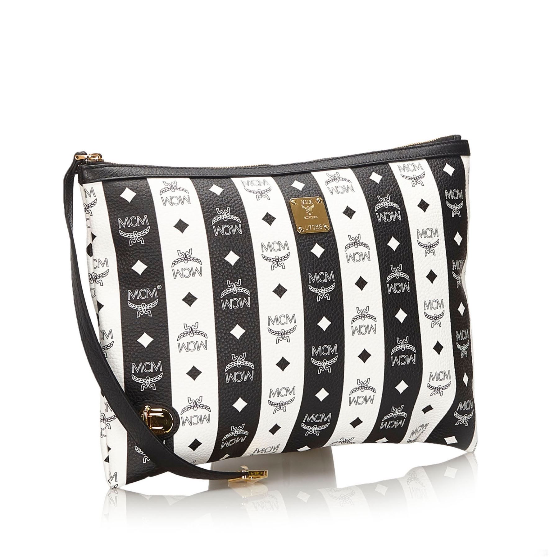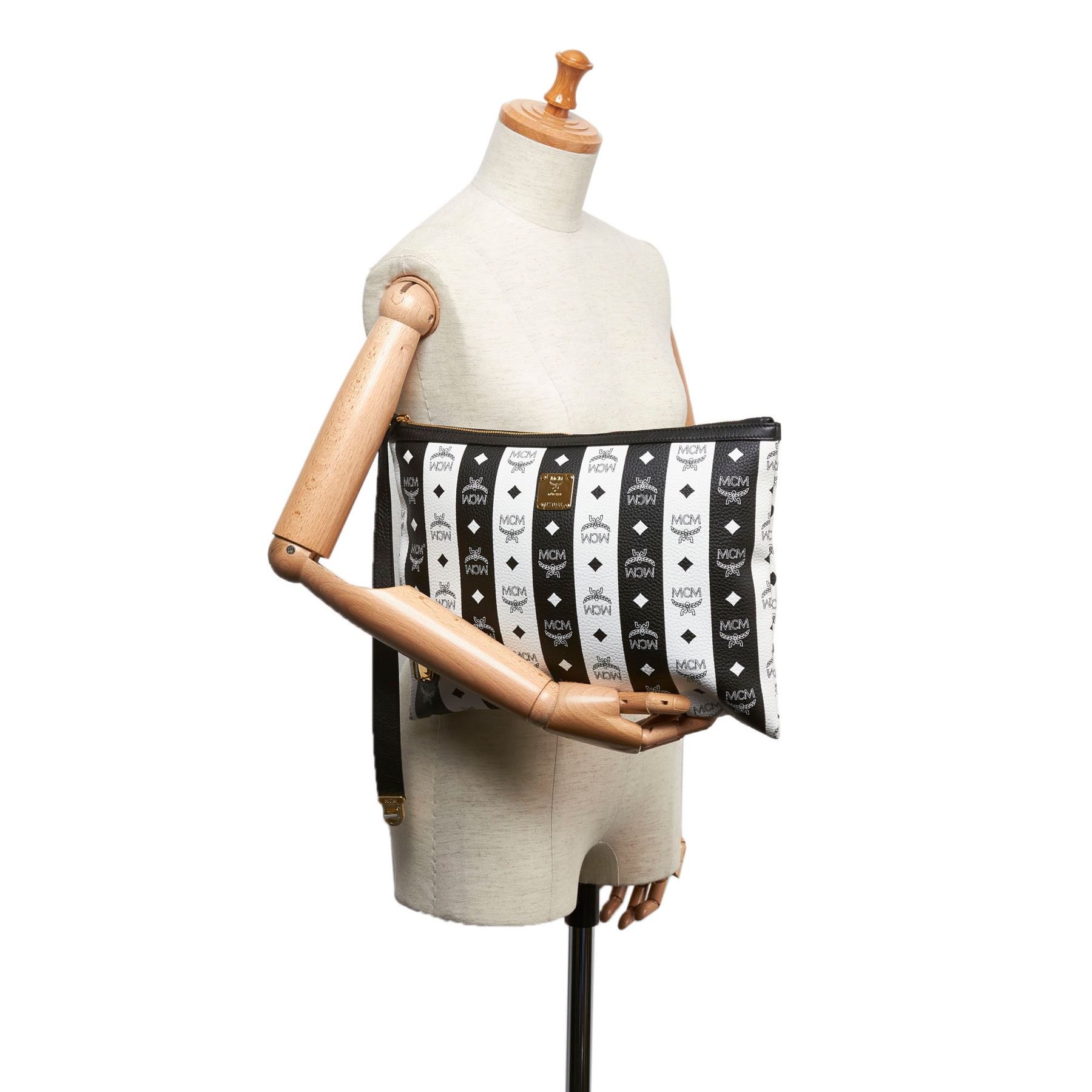 This clutch bag features a leather body, a flat leather wrist strap, a top zip closure, and an interior zip pocket. Leather x Others Black x White Size: 28 x 38 x 1 Card: NO Made in: Germany