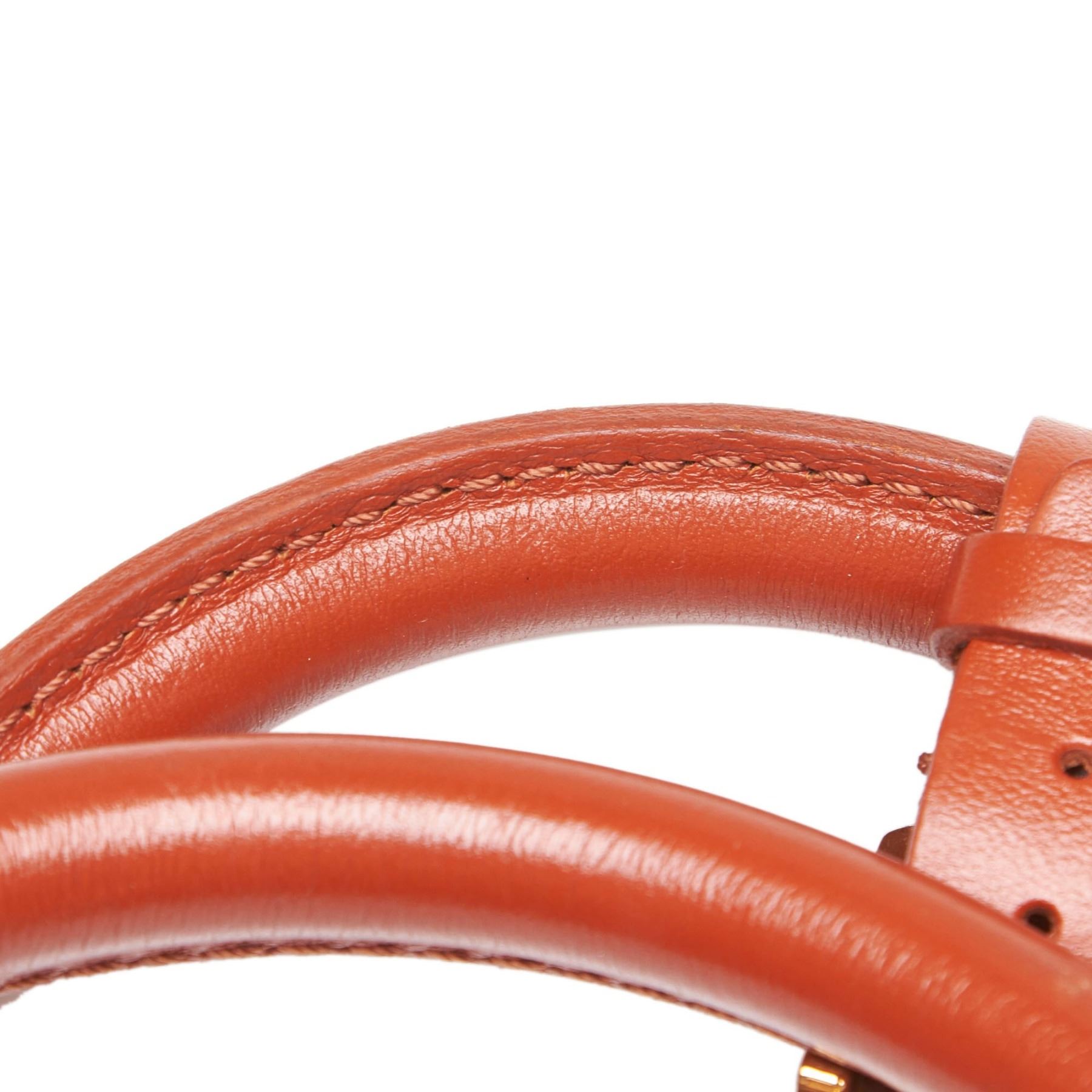 This duffle bag features a leather body, rolled leather handles, a detachable flat strap, a top zip closure, and an interior zip pocket.