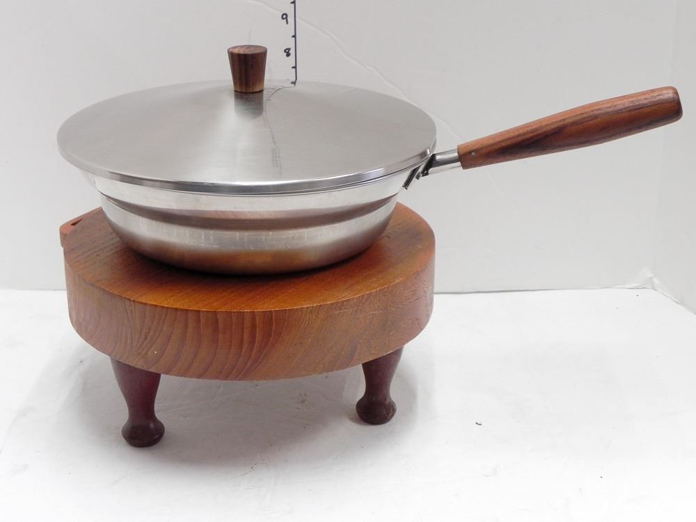 MCM WOODEN TABLE TRIVET WITH ALUMINUM WOODEN HANDLE POT