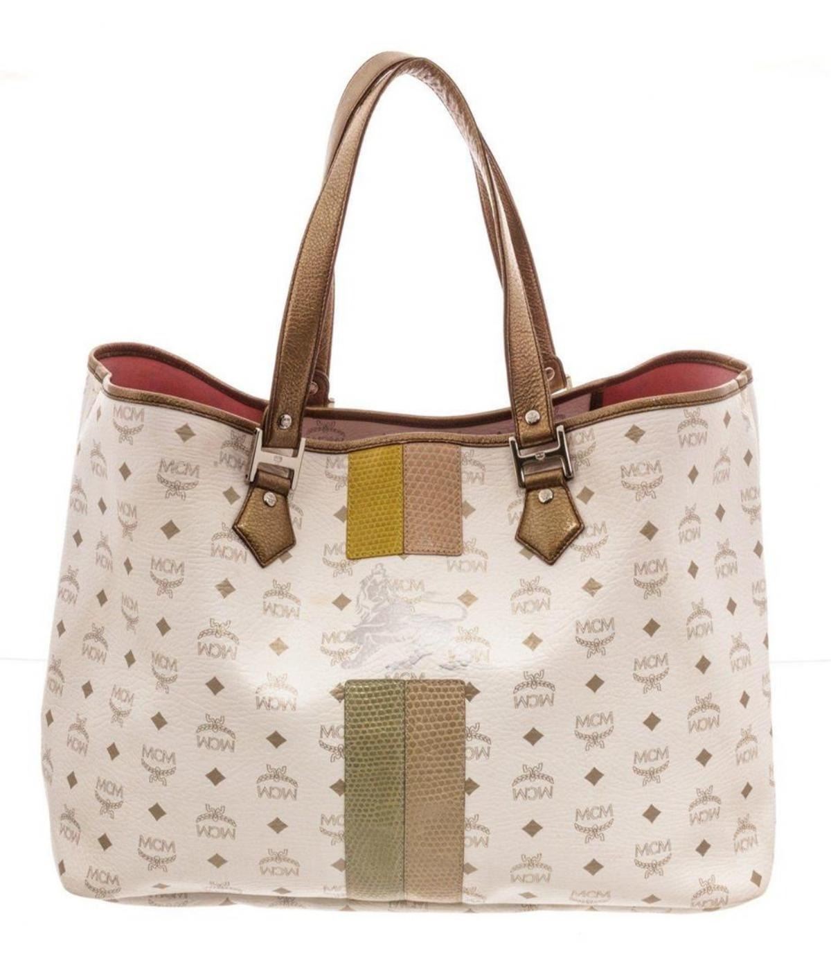 MCM White Large Lion Shopper Tote Bag with silver-tone hardware , interior slip pocket, shoulder strap and flap closure. Measurements: Length: 18 in / 46 cm Width: 7.5 in / 19 cm 13 in / 33 cmCONDITION: Pre-Owned Good overall, please see photographs for detail.