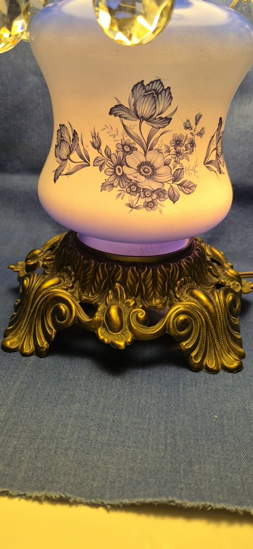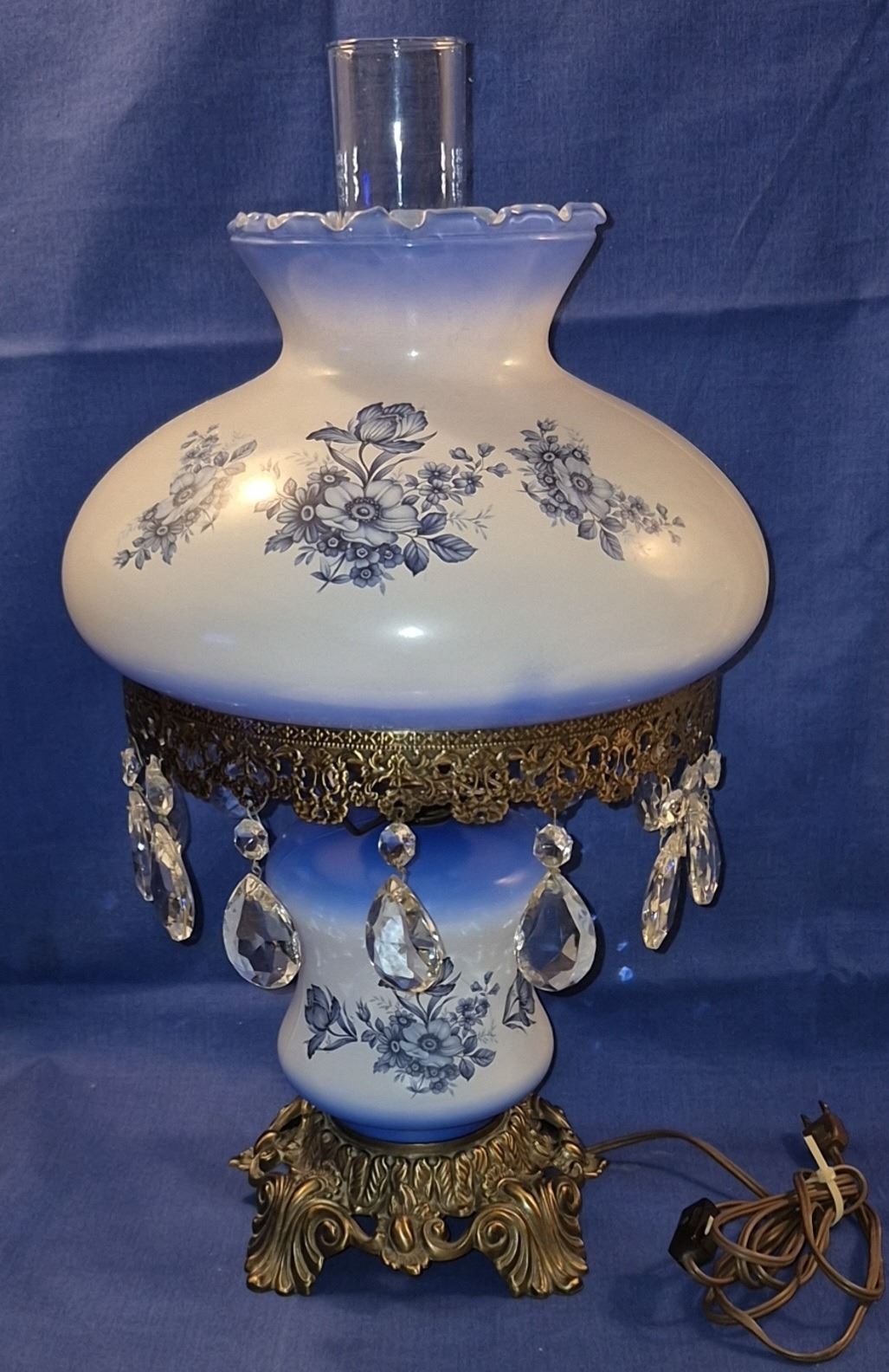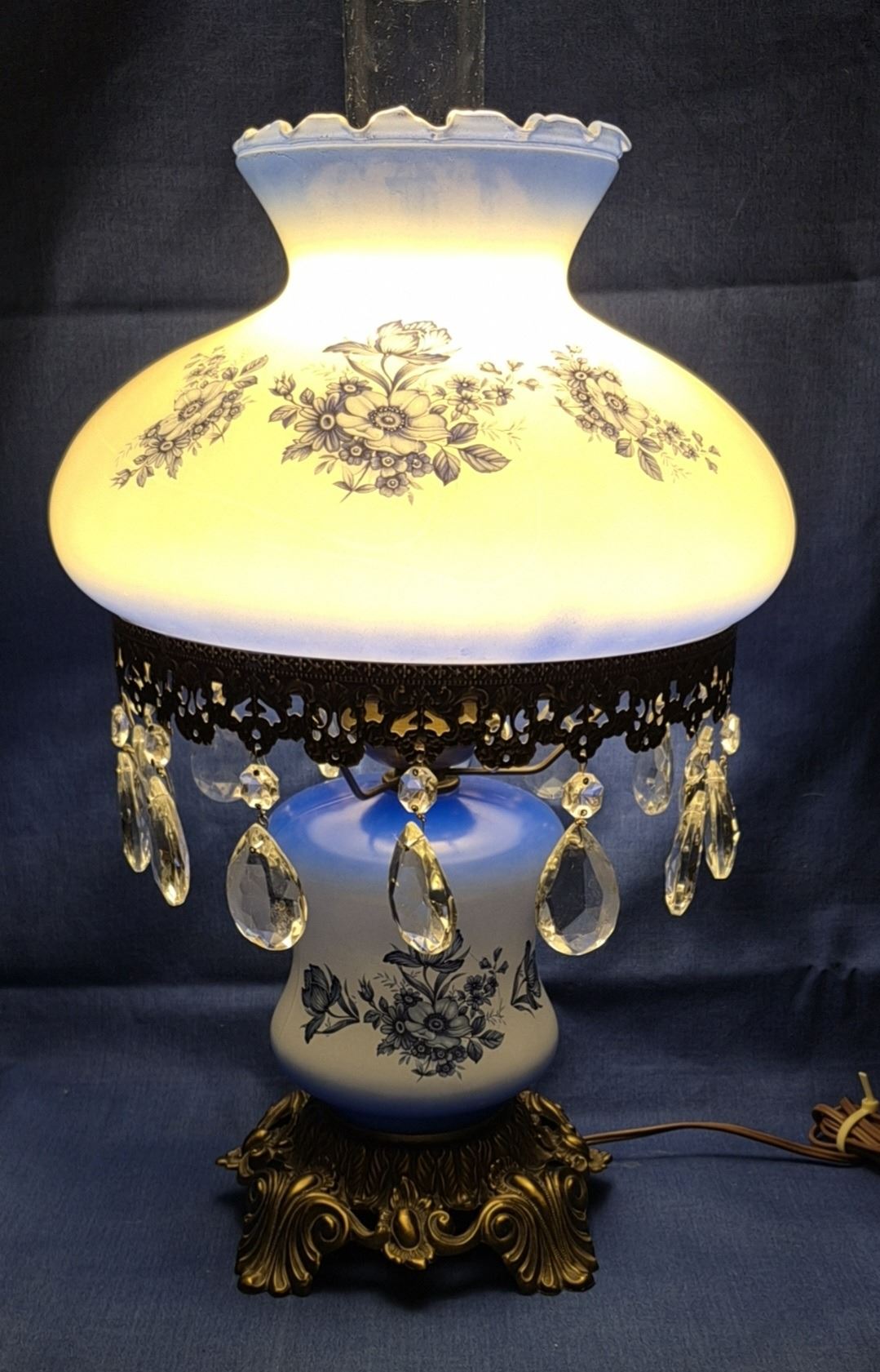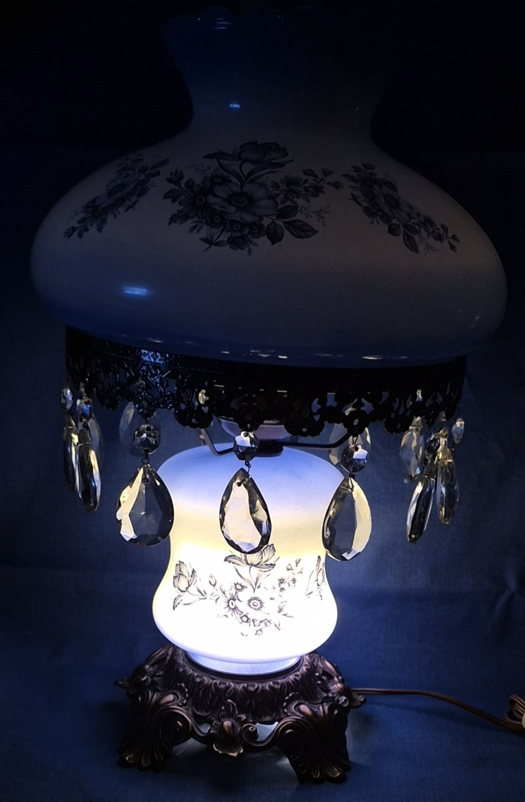 MCM electric Gone with the Wind lamp, with prisms, 3 way setup - top, bottom, or both light up