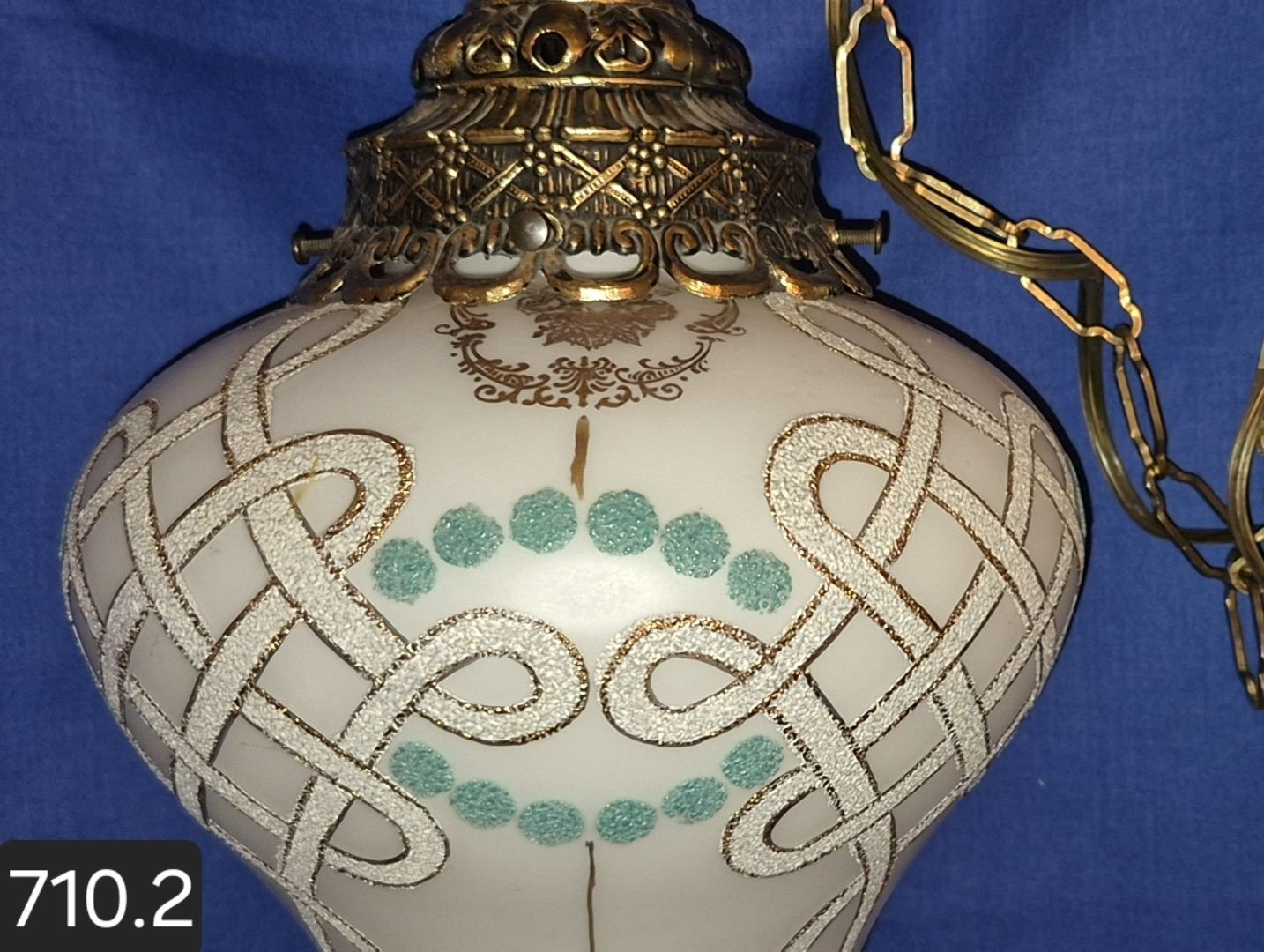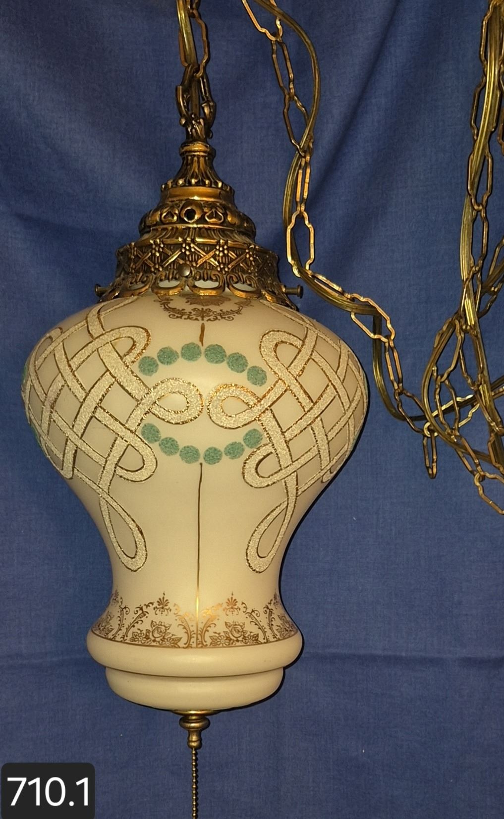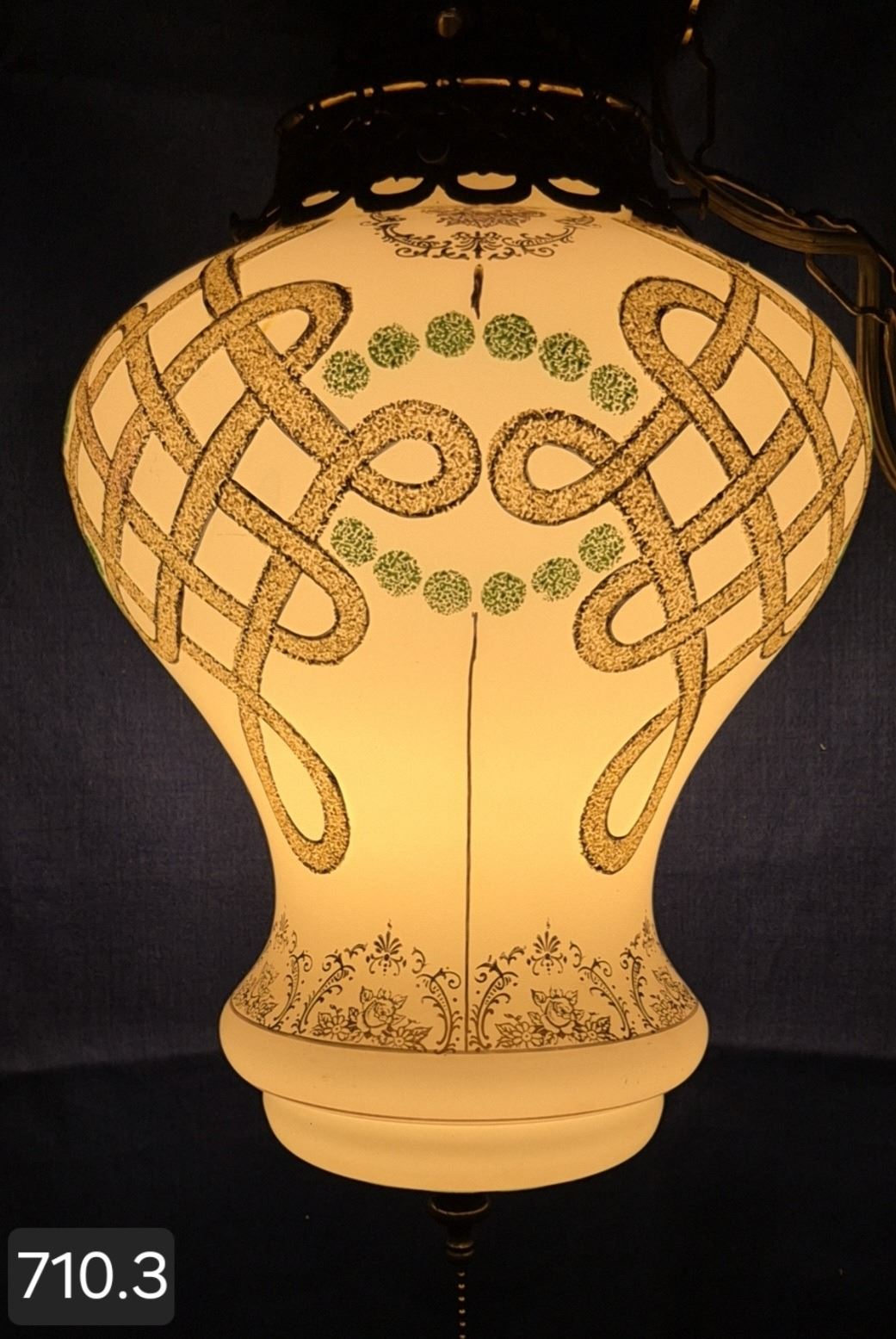 MCM hanging amber swag lamp, textured decoration, original diffuser, working