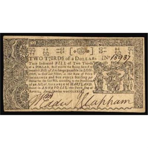 MD-65. Maryland. April 10, 1774. $2/3. PMG Extremely Fine 40EPQ.