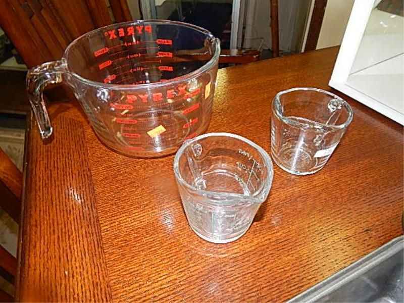 MEASURING CUPS - 1 LARGE PYREX & 2 OTHER