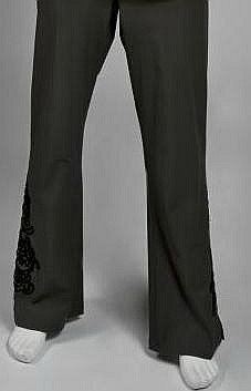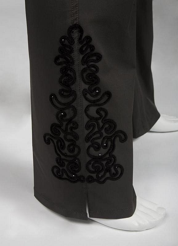 MEAT LOAF - a pair of grey trousers with black chenille embroidery near the hem worn on stage with "Ali Rahimi for Mon Atelier" labels. Condition Report: Very good. Obtained from Juliens auctions.