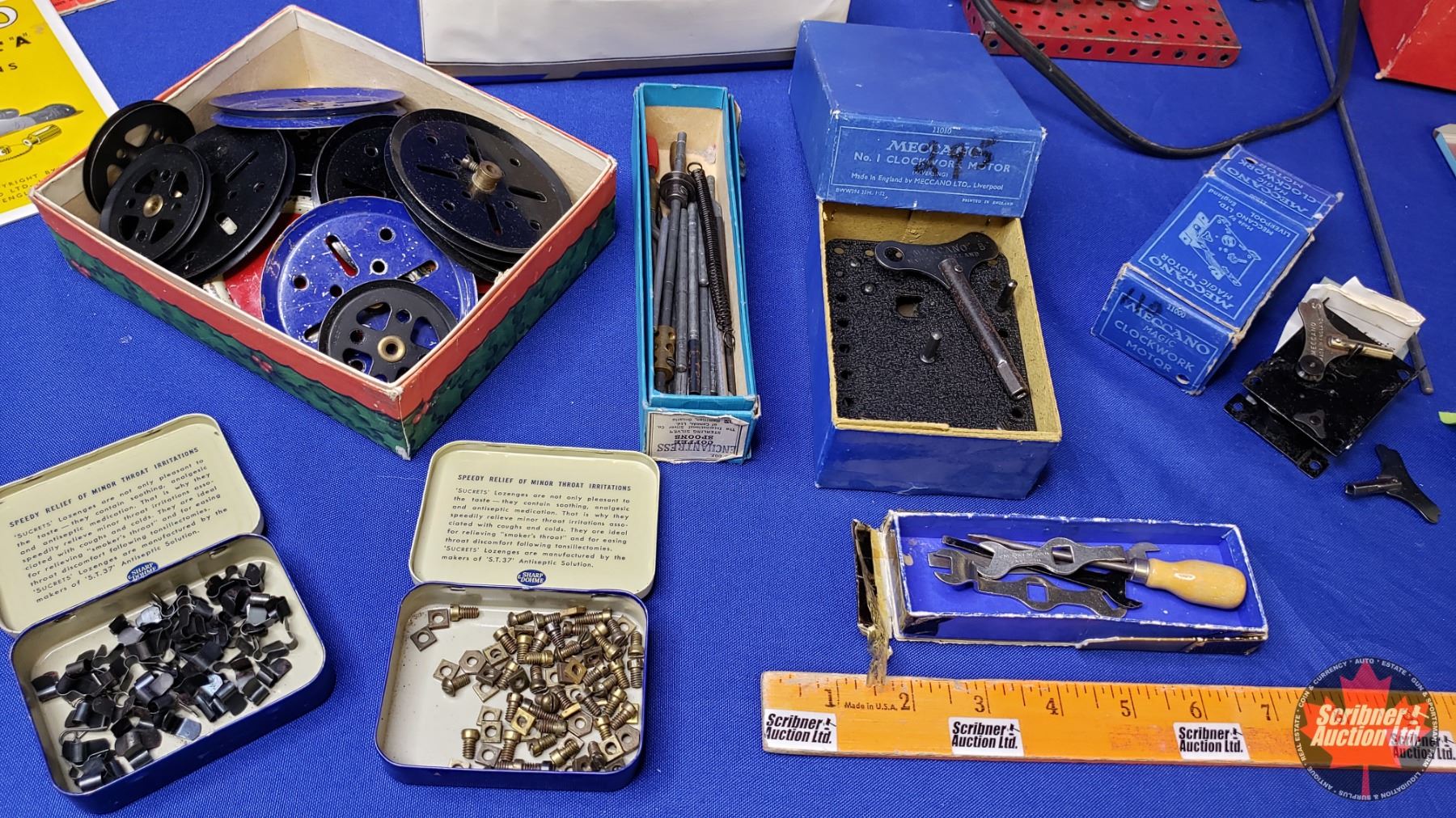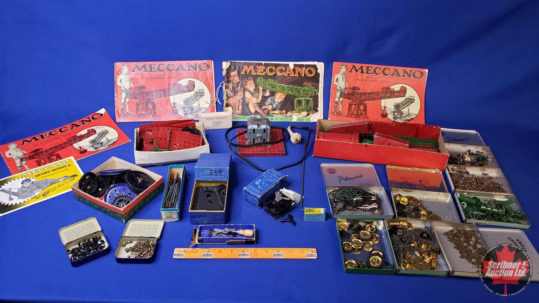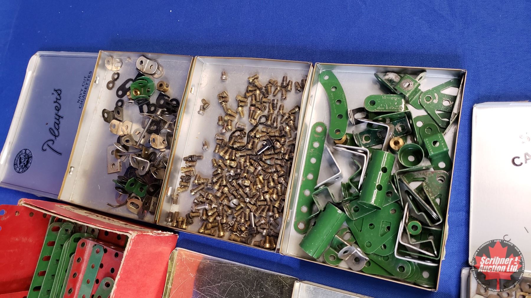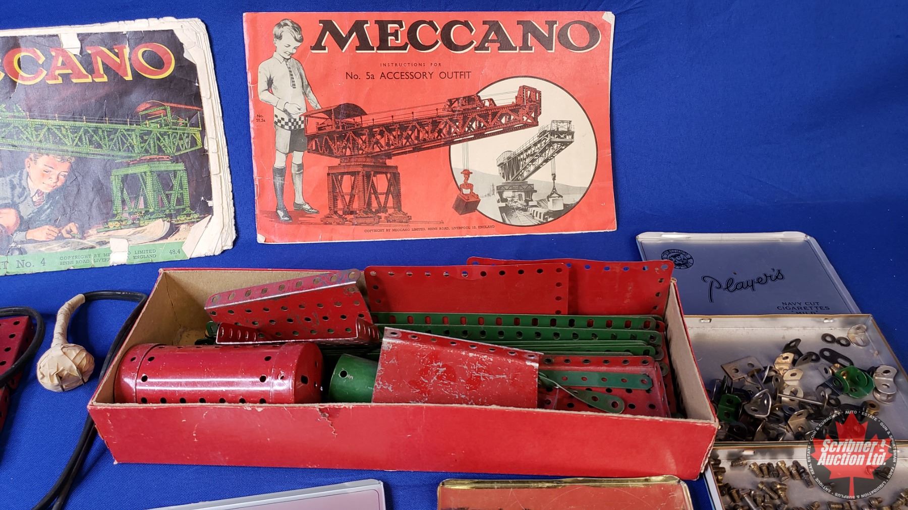 MECCANO COLLECTION (Sorted Pieces in Cig Tins & Meccano Instruction Booklets, etc!) MUST SEE PICS!