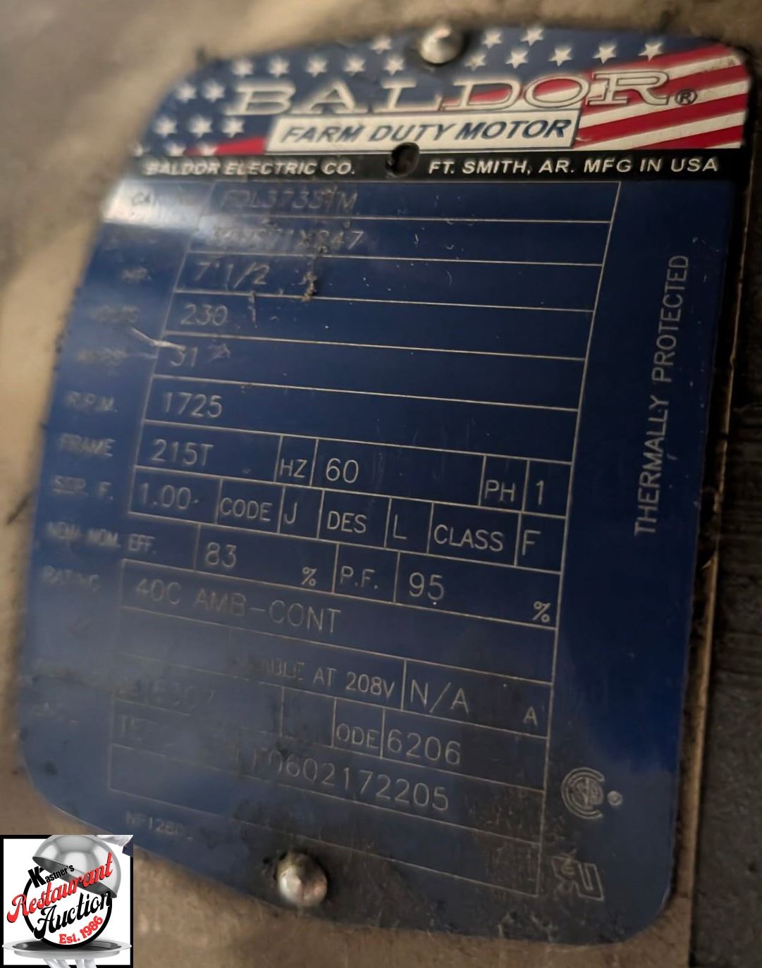 * BULLS HEAD HAS SIGNIFICANT DAMAGE AND WILL NEED REPAIR * 7 1/2 HORSEPOWER, 31 AMPS, 230 VOLTS, 1725 RPM, 60 HZ, PHASE 1,