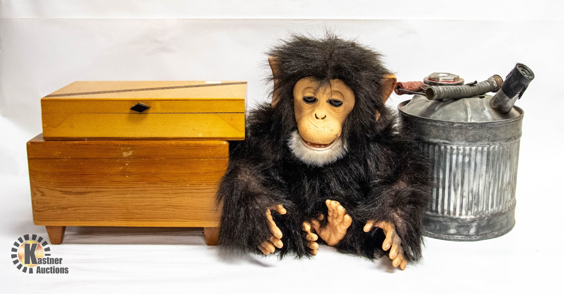 MECHANICAL MONKEY ANTIQUE GAS CAN ETC