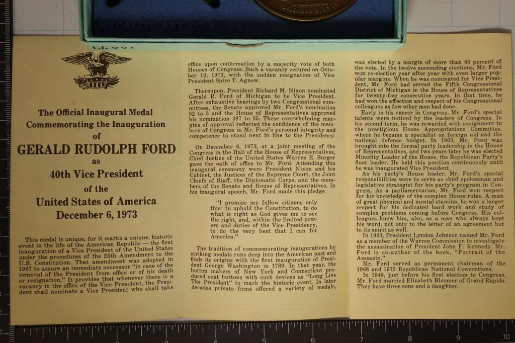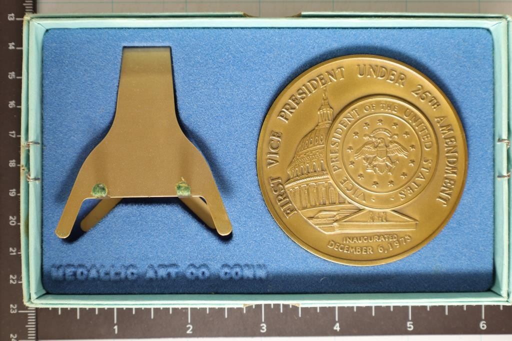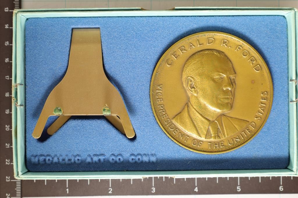 FORD 40TH PRESIDENT OF THE UNITED STATES. 2.75" SOLID BRONZE, EDGE MARKED IN ORIGINAL MINT PACKAGING WITH STAND BOX AND PAPERWORK. SOME TONING NOTED