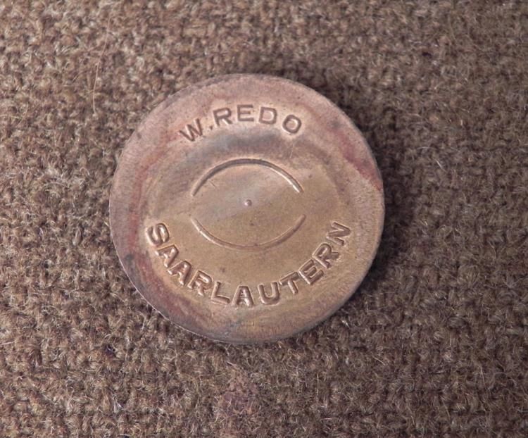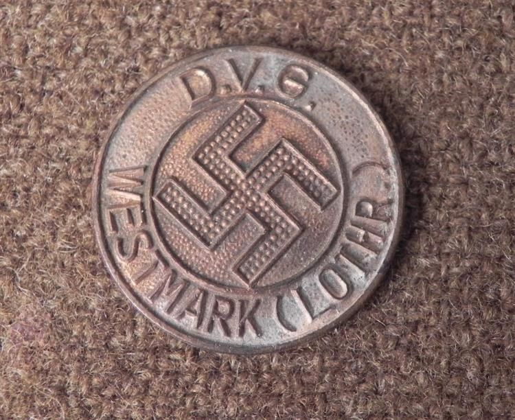 MEDALLION FOR D.V.G.-WESTMARK (LOTHR)GERMAN ETHNIC GROUPS-ALSACE LORRAINE * TRULY A RARE PIECE AND ORIGINAL--COIN TYPE MEDALLION SHOWING SWASTIKA AND READING "DVG-WESTMARK-LOTHR"--BADGE OF THE FEDERATION OF GERMAN ETHNIC GROUPS-WESTMARK (ALSACE LORRAINE)REVERSE-W. REDO--SAARLAUTERN *