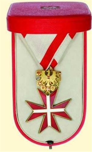 Golden Distinction of Honour; breast badge, bronze gilt, obverse enamelled, with federal eagle-suspension, with original triangular ribbon; in original box of issue ("Anton REITTERER, Wien...").