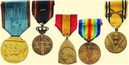 Lot of Five; different medals, all bronze, partially gilt; with original ribbons