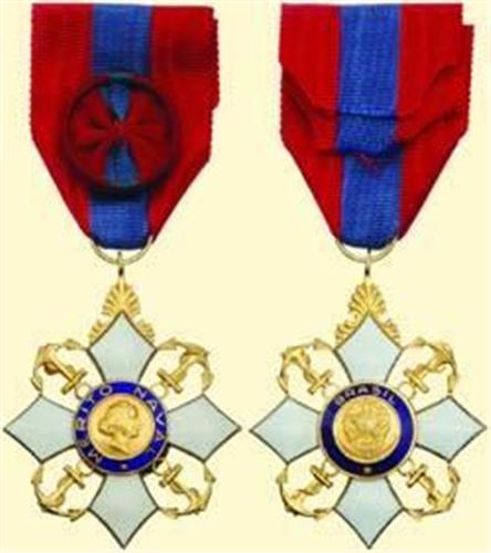 Officer's Cross; breast badge, bronze gilt, both sides enamelled; with original ribbon with rosette. Small signs of wearing!