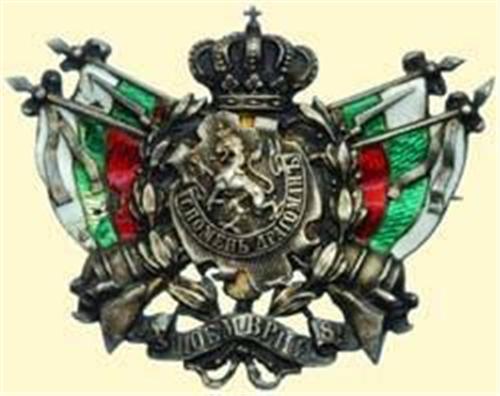 (Bulgarian victory over Serbia/...for interpretors); breast badge with pin back, silver, partially enamelled (colours of Bulgaria), horizontal pin on reverse, old Austrian hallmarks (2x A), signs of gilding. Small enamel damages, signs of wearing. Very fine and rare badge!