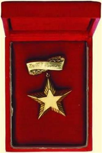 Breast badge, gold, reverse blank; with silver gilt suspension bar, with pin on reverse, in original box of issue. Small signs of wearing.