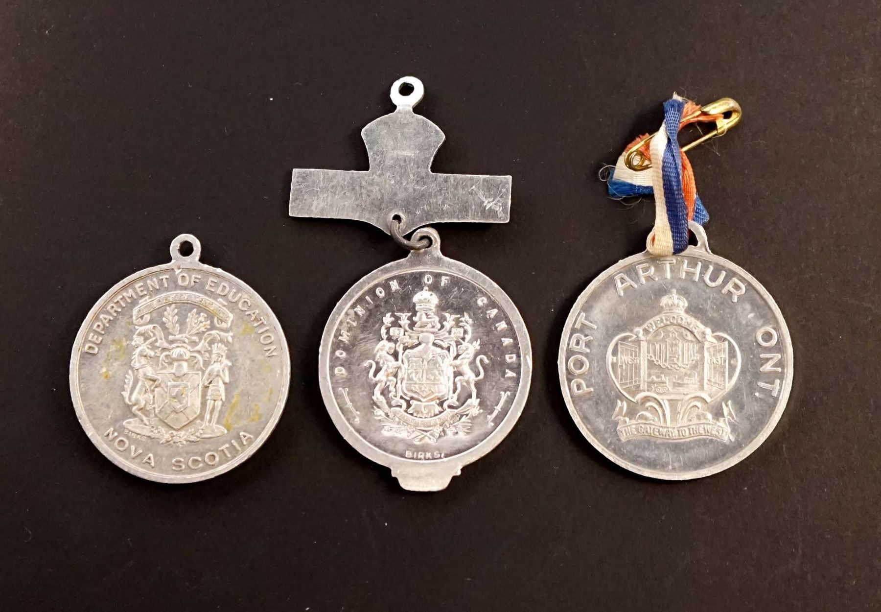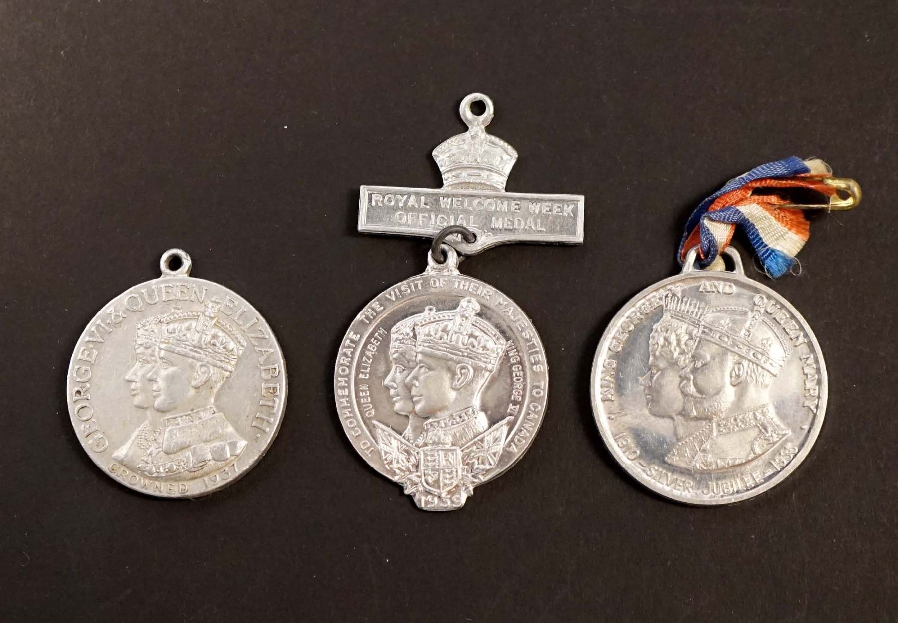 1 x 1935 George V Jubilee w/ribbon, issued by Port Arthur (now Thunder Bay), Ontario. VF, 1 x 1937 George VI Coronation Medal issued by Dept. of Education, Nova Scotia and 1939 Royal Welcome Week Official Medal bar by Birks w/ conjoined heads. The writer had never seen this bar before.