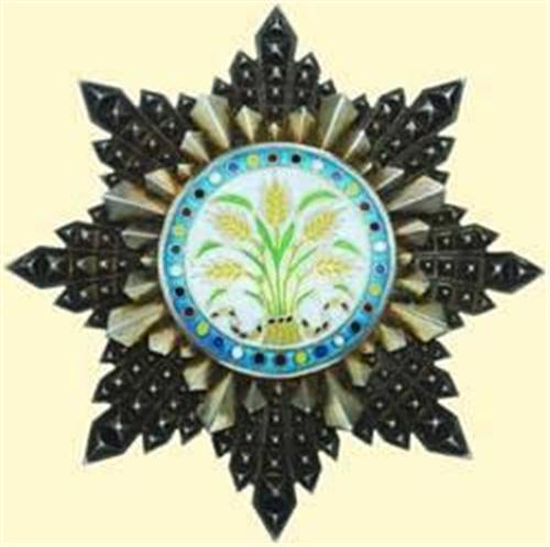 Breast Star - 2nd Type (Grand Officer); Breast Star, silver, partially gilt, brilliant cut, centre medallion colourful enamelled, diameter 88 mm; reverse wit broad flat pin, Chinese marks and official stamp. Very fine quality, centre medallion a bit loose, tiny enamel damages.