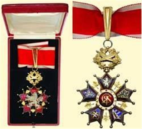 Commander's Cross for Civil (3rd Class) - I.Type; neck badge, silver gilt, partially enamelled, superimposed lion silver-grey frosted, wreath with palm branches and enamelled suspension loop, with French swan-mark; with not-correct ribbon, in original box of issue (KARNET&KYSELY, Praha; LINDAUER, Praha). Enamel damage in centre under lion.