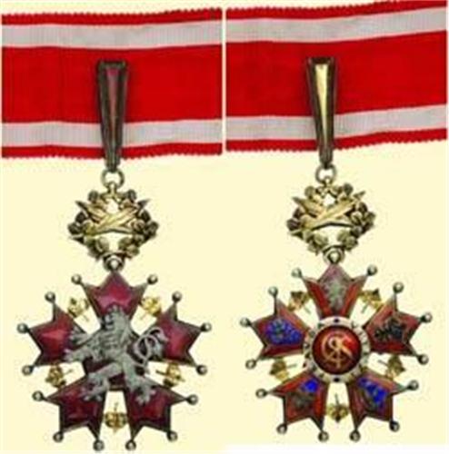 Commander's Cross for Civil (3rd Class) - I.Type; neck badge, silver gilt, partially enamelled, superimposed lion silver-grey frosted, wreath with palm branches and enamelled suspension loop, hallmarked (900), maker's mark "KK", with original ribbon. Some patina!