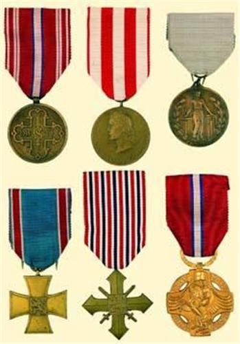 Lot of Six Decorations and Medals; Commemoration Medal of the Union of Volunteers from 1918-1919, Commemoration Medal FIDAC 1918-1919 in bronze, Commemoration Medal of the Second National Resistance 1946, Commemoration Medal of Volunteers 1918-1919, Czechoslovakian War Cross 1939, Czechoslovakian Revolution Medal 1914-1918. All bronze with original ribbons