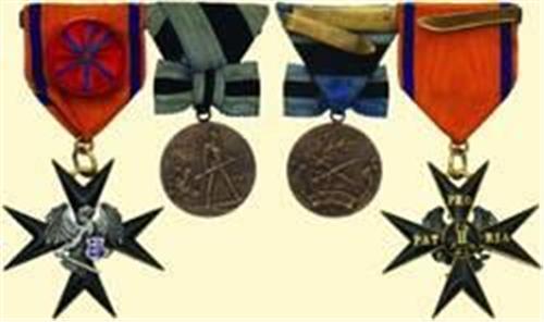 Group of Two; Officer's Cross (bronze gilt, enamelled, with superimposed silver patinated eagle); Fighter for Independence 1918-1920-medal (bronze); with original ribbons on brass bar. Fine group!