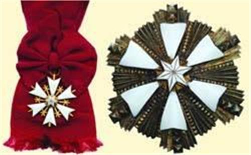Grand Cross Set; Sash Badge, bronze gilt, both sides enamelled, with suspension ring and new sash. Breast Star, silver with slightly gilt and enamelled superimposed parts; reverse with middle pin and two side hooks, maker's mark (LEMAITRE A PARIS); some patina.