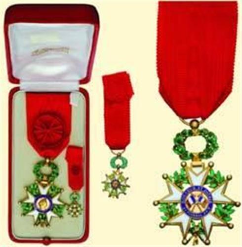 Officer's Cross - 8th Type (1951- ); breast badge, silver gilt and enamelled, excellent three-dimensional jeweller's quality, French hallmarks, with original ribbon with rosette; together with miniature badge (silver gilt and enamelled, with ribbon), in original red leather box (A.BACQUEVILLE...Paris).