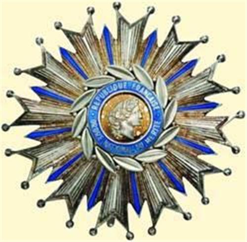 Grand Officer's Breast Star - II.Type; breast star, silver, partially blue enamelled, wide tapered pin and two side hooks on reverse, French hallmarks and maker's mark. Attractive star with small signs of wearing and cleaning.