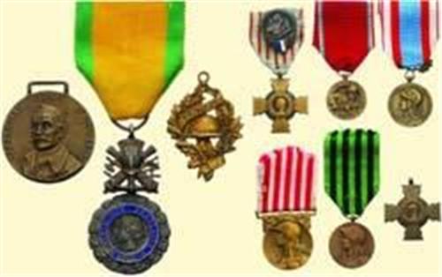 Group of Ten; Military Medal -Type 1870 (silver, partially enamelled); Croix du Combattant (2x); War Medal 1914-1918; Defence Medal 1870-1871; Commem. Medal for Northafrica, Verdun-, Marechal Foch-, U.N.C.-Medal etc. All bronze, mostly with ribbons.