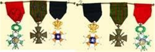Group of Three; Officer's Cross - 7th Type (1870-1951), silver, signs of gilding, enamelled, French hallmarked, with original ribbon with rosette, severe enamel damages; Croix de Guerre -1914/1918, bronze toned, with original ribbon with three stars, signs of wearing; Sweden: Order of the Northern Star - Knight's Cross, gold enamelled, with original black ribbon, some enamel damages on both sides. Together on a metal bar.