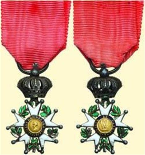 Knight's Cross - 5th/6th Type "La Presidence" (1851-52); "Réduction" of the breast badge in silver, gold centre medallion and enamels (usual damages to the arms, wreath and medallions' circle). Grooved suspension ring and original ribbon. An attractive piece with a dark patina.