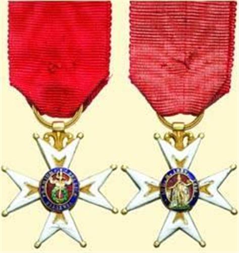 Knight's Cross - Half Size Badge; breast badge, gold, partially enamelled, size 24 x 26,5 mm, with ballpoints and large grooved ring with old ribbon. Reverse medallion is mounted the wrong way round, small enamel cracks; fine quality from beginning of 19th century!