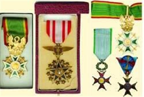 Lot of Five; five different decorations of semi-official or private character: neck badge (1x), breast badge (4x); for example: Education Sociale, Société d'Encouragement au Devouement, Le Génie Français etc.; all bronze or metal gilt, silver plated, partially enamelled or enamel lacquered, with ribbons, two with original box. Fine design and quality!