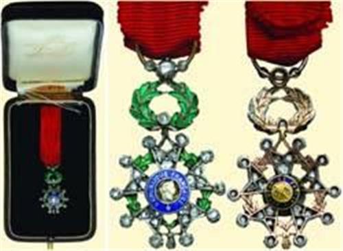 Miniature Badge with Diamonds - 8th Type (1951- ); breast badge, silver, partially enamelled, set with rose cut diamonds, reverse with thin gold-layer, cut out version, with small ribbon; with small leather box (ANCne MAISON HALLEY / LASNE SUCCR, Paris). Very fine attractive quality!
