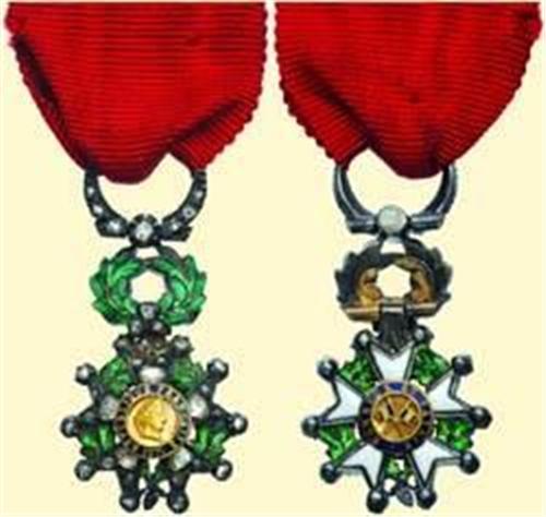 Miniature Badge with Diamonds - 7th Type; breast badge, silver partially gilt, medallions gold, obverse set with rose cut diamonds, reverse enamelled, size 14,5 x 24 mm; with small ribbon, in old original wedge-shaped red leather box (Kretly, Paris) with printed initials (J.W.). Very attractive miniature!