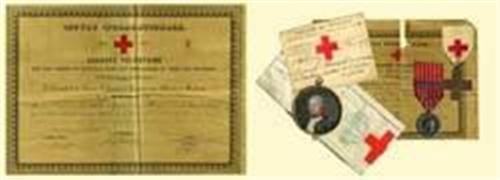 Family Group; Italian Campaign Medal 1859; silver with eagle-mark, original ribbon with bar (1866); Cross 1870-1871 of Société Française de Secours...; bronze, signs of gilding, original ribbon with red cross. With two large awarding documents for ladies 1871 (bad condition because of old age); one identity card, one arm band with red cross (stamped twice, inscription on inside). Miniature picture of a French officer (1859 ?), gouache on ivory in a glassed frame (brass gilt), silver gilt cut out ornate letters on reverse. Excellent vivid potrait in very fine condition!