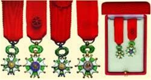 Two Miniature Badges; Officer's Cross - 8th Type (20. Floreal ANX), silver gilt and enamelled, with ribbon with rosette; Knight's Cross - 7th Type (1870), silver enamelled, small version (12,5 x 20 mm), with ribbon. Together in box (A.MARIE STEWART...).