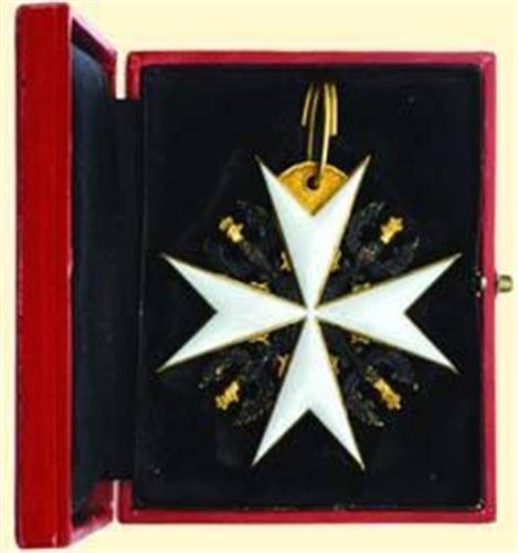 Knight of Honour; neck badge, bronze gilt, both sides enamelled, eagles black lacquered, with suspension loop; in small original box of issue. Very fine quality from first half of 20th century, minimal signs of age.
