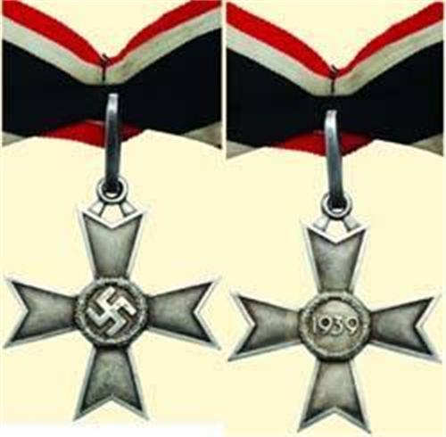 Knight's Cross of the KVK; neck badge, silver with light patina, hallmarked "900" and maker's mark "1" (Deschler&Sohn, München) on lower arm, high quality flat version with precise polished edges, typical smooth suspension loop and original complete ribbon. Tiny collection's number is scratched on rim of left arm. Excellent quality and best condition, one of the rarest German decorations of WW II (only 140 awardings)!