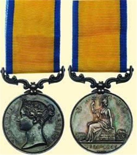 Baltic Medal 1854-1855; silver, Queen Victoria profile ("Wyon"), unnamed, with ornamental swivel suspension and short piece of new ribbon. Fine dark old patina, small signs of contact and edge bruising.
