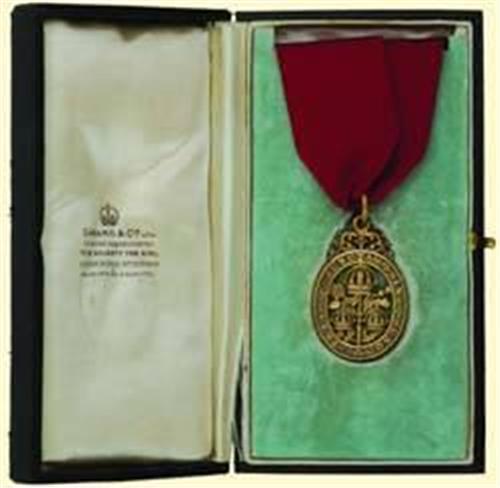 Companions' Decoration - (Civil / C.B.); breast badge (?), silver gilt, British hallmarks, maker's mark "SG", size 33,3 x 50,7 mm, with grooved suspension ring and small piece of new ribbon; in original box of issue (GARRARD&Co. Ltd....London).