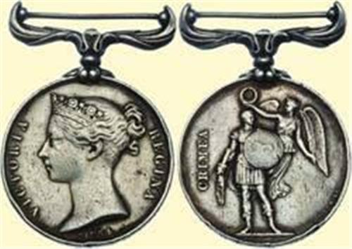 Crimea Medal 1854; silver, Queen Victoria profile ("Wyon"), rim inscription "CH. COLLOT S. OFF. AU 92E", with ornamental swivel suspension. Severe signs of wearing and contact, edge bruising! (French NCO!)