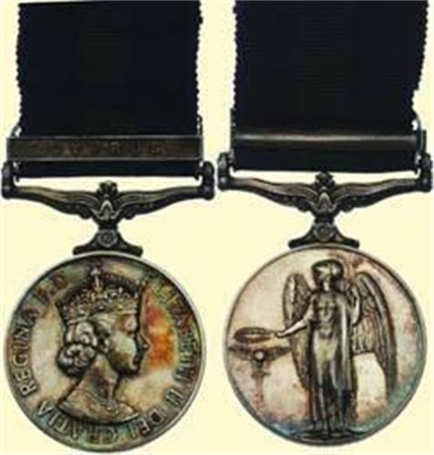 General Service Medal - Elizabeth II / 2nd Type; silver, "Elizabeth II Dei Gratia..." (1955-62), named "23420128 PTE. F. CLARKE. A. C. C.", with ornamental suspension bar with "CYPRUS"-clasp and original ribbon. Fine slight patina!